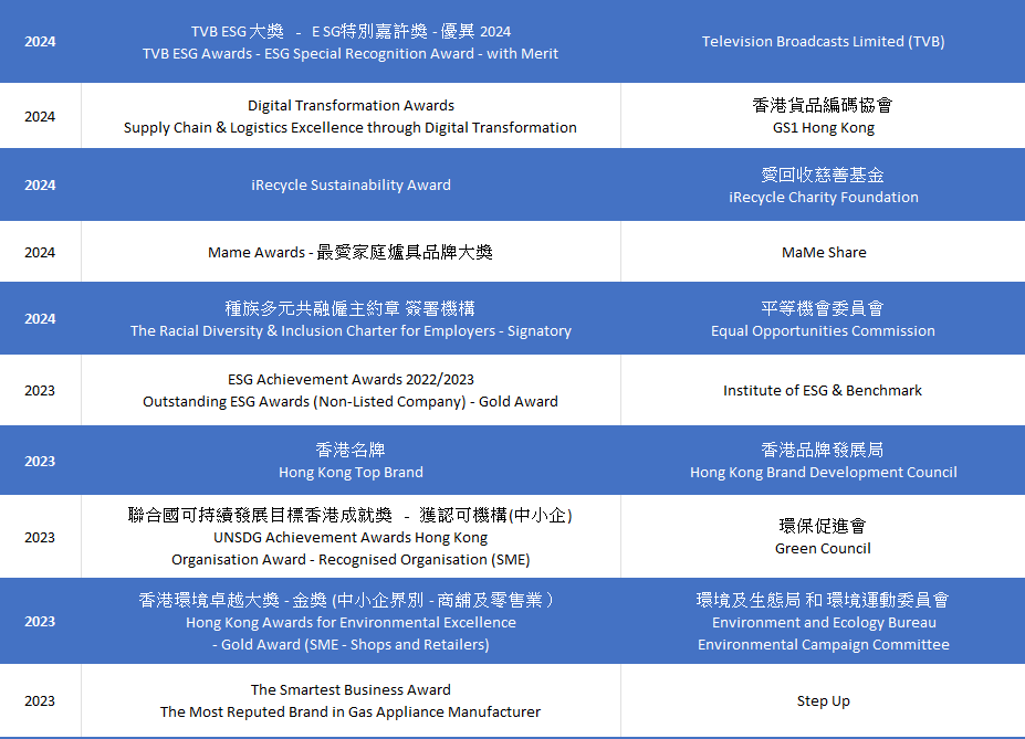 面对新世代消费趋势,公司推出融合创意(Creative)、环保(Green)与时尚(Stylish)元素的CGS皇冠系列,不仅具备优良功能,也兼顾美观及环保需求。CGS系列亦扩展至户外产品,如BBQ烧烤炉、取暖灯、灭蚊机及降温风扇,实现业务多元化,持续迈向新高峰。