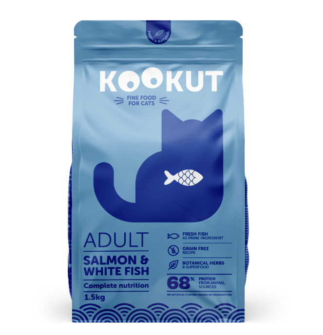 Kookut Dry Cat Food – White Fish & Salmon for Adult 1.5kg